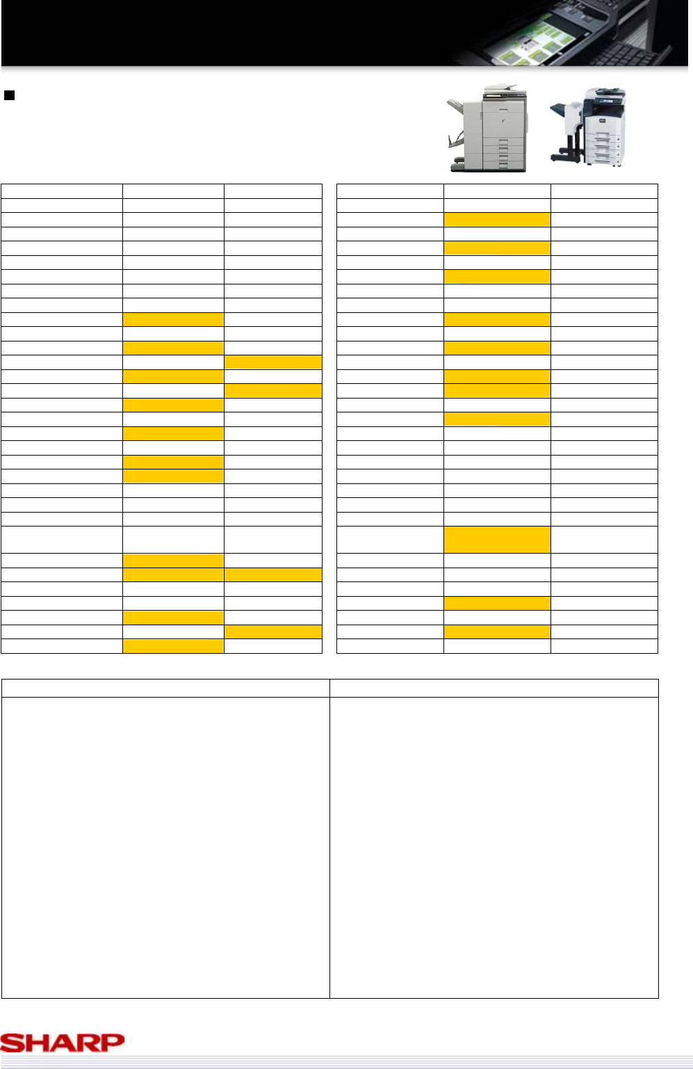 Copier Std. Mem. MB 640mb 512mb (shared) Functionality Sharpdesk