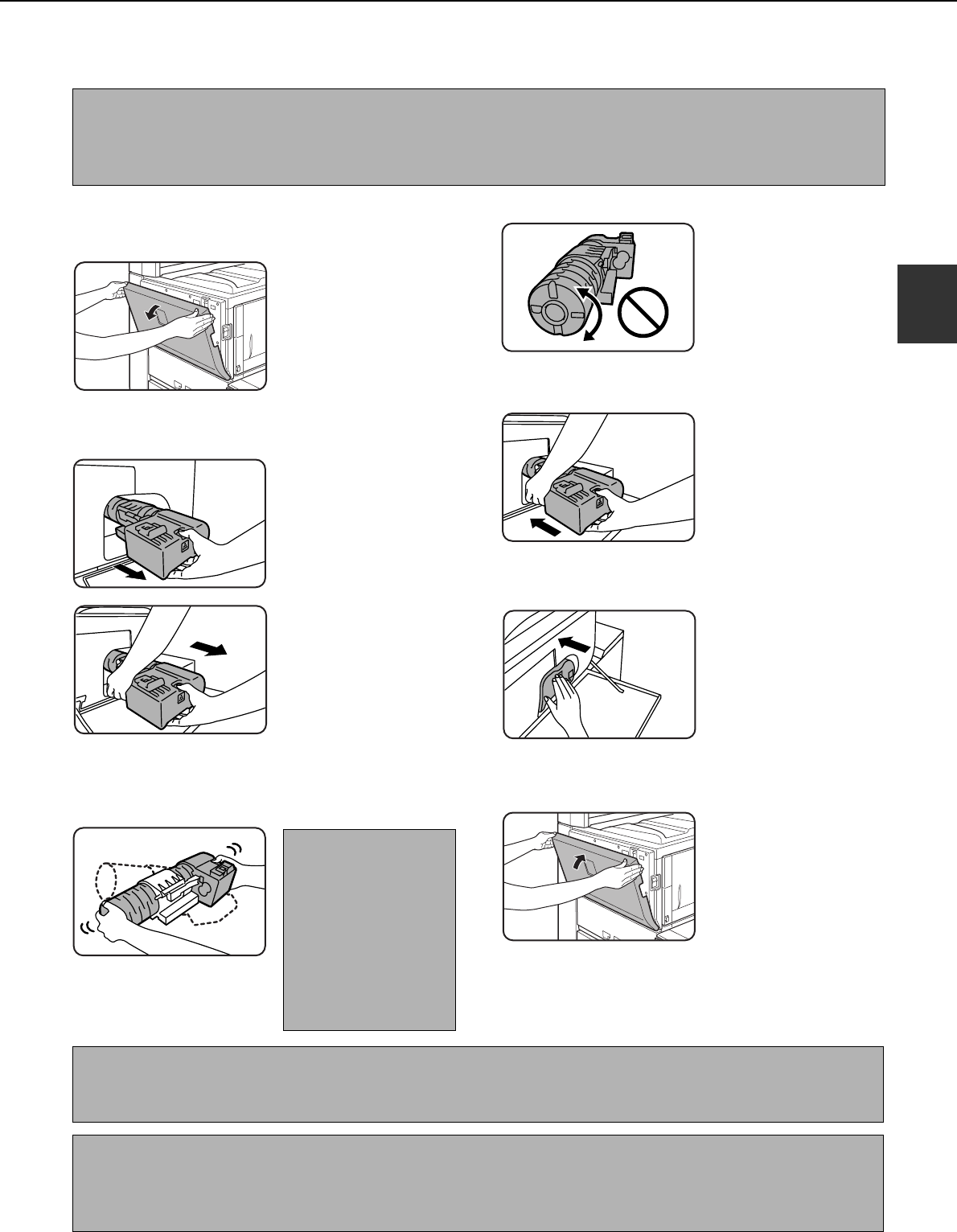 ● Do not throw the toner cartridge into a fire. Toner may fly and cause burns.