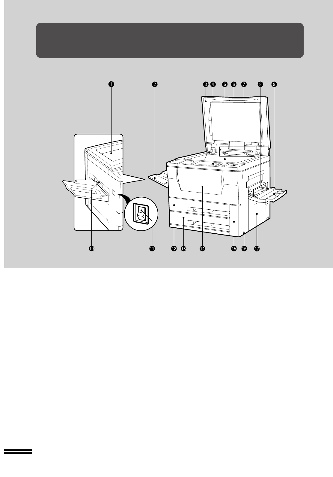 Press to turn copier power on and off.