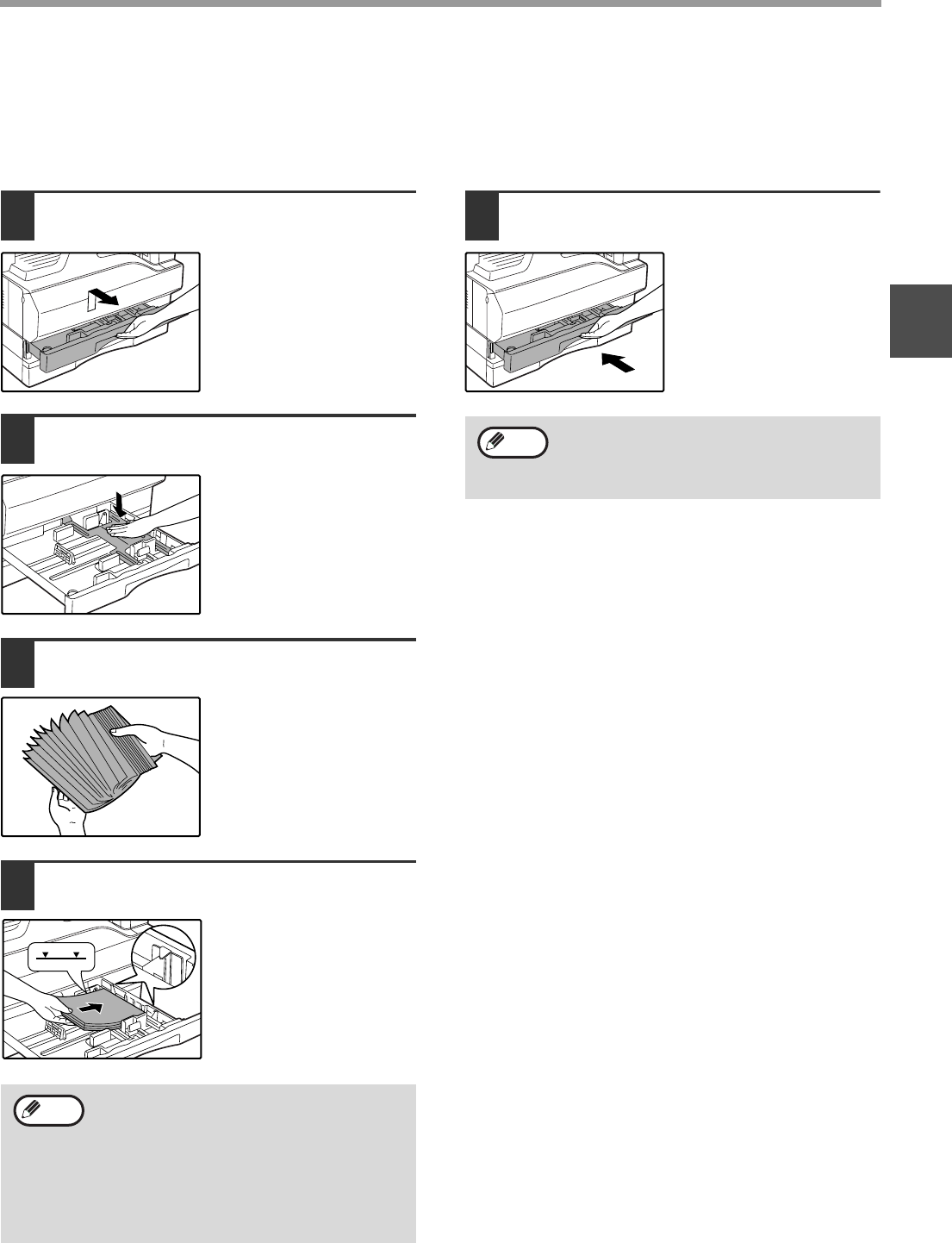 Make sure that the machine is not copying or printing, and then follow these steps to load paper.