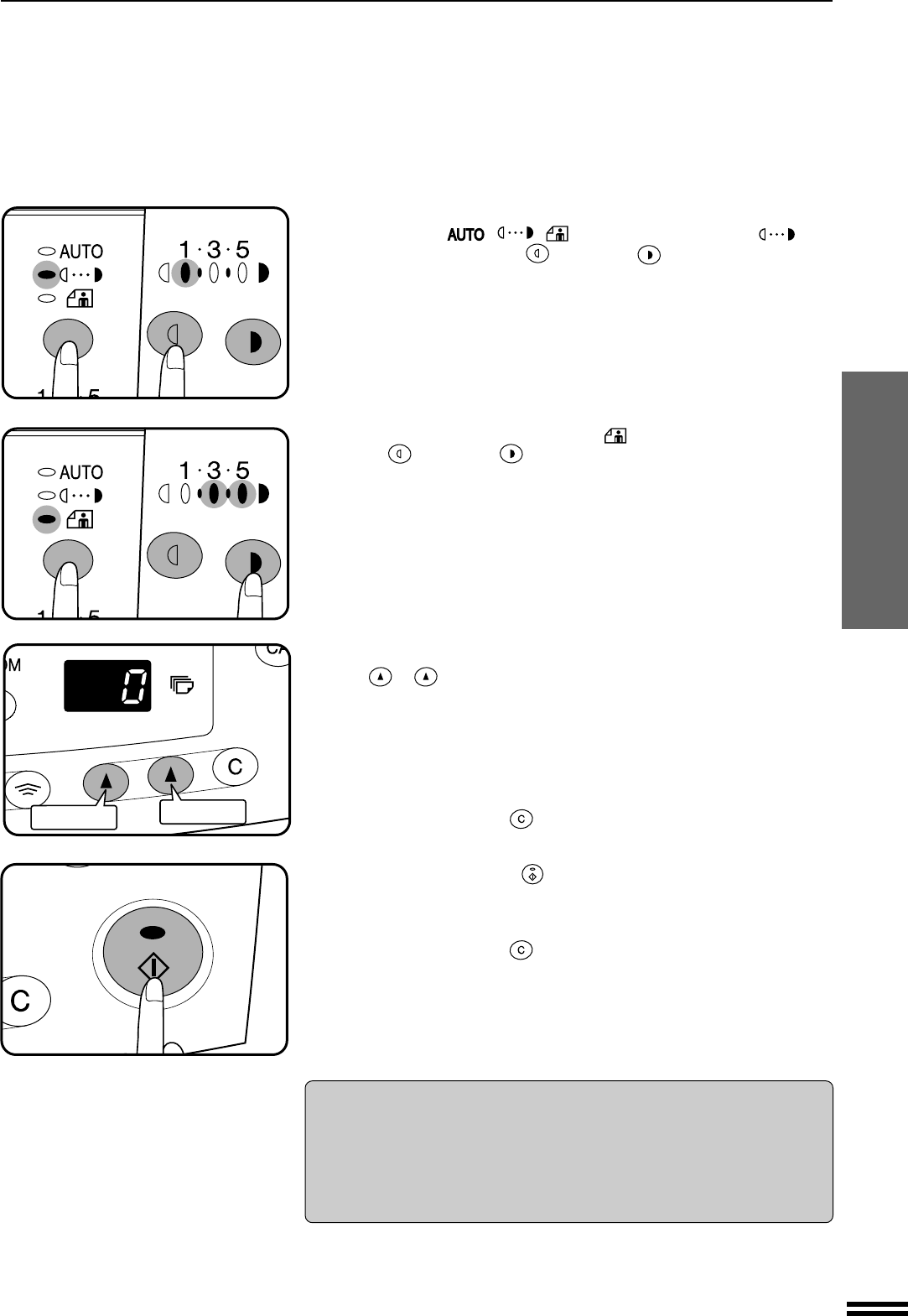 For manual copy density adjustment, press the AUTO/MANUAL/