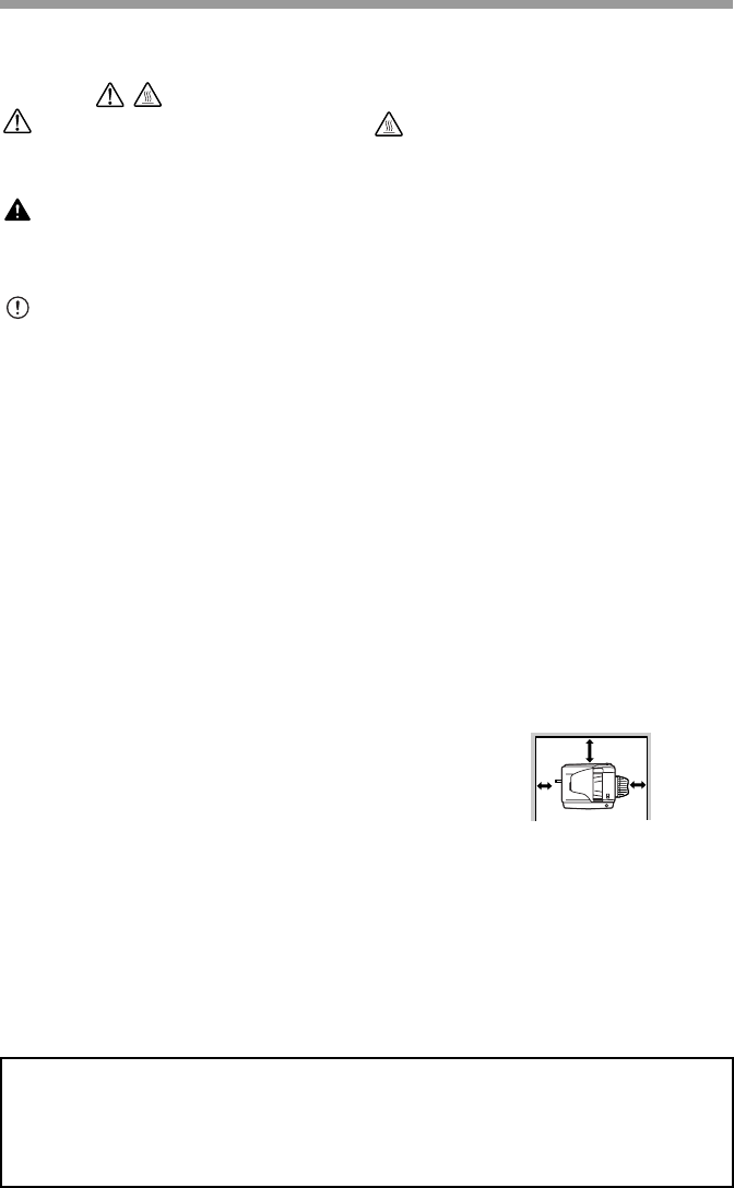• Do not cover the unit with a dust cover, cloth or plastic film while the power is on.