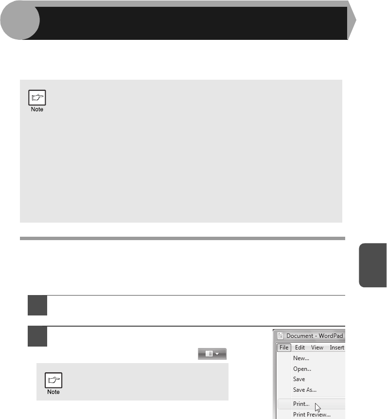 The following example explains how to print a document from WordPad.