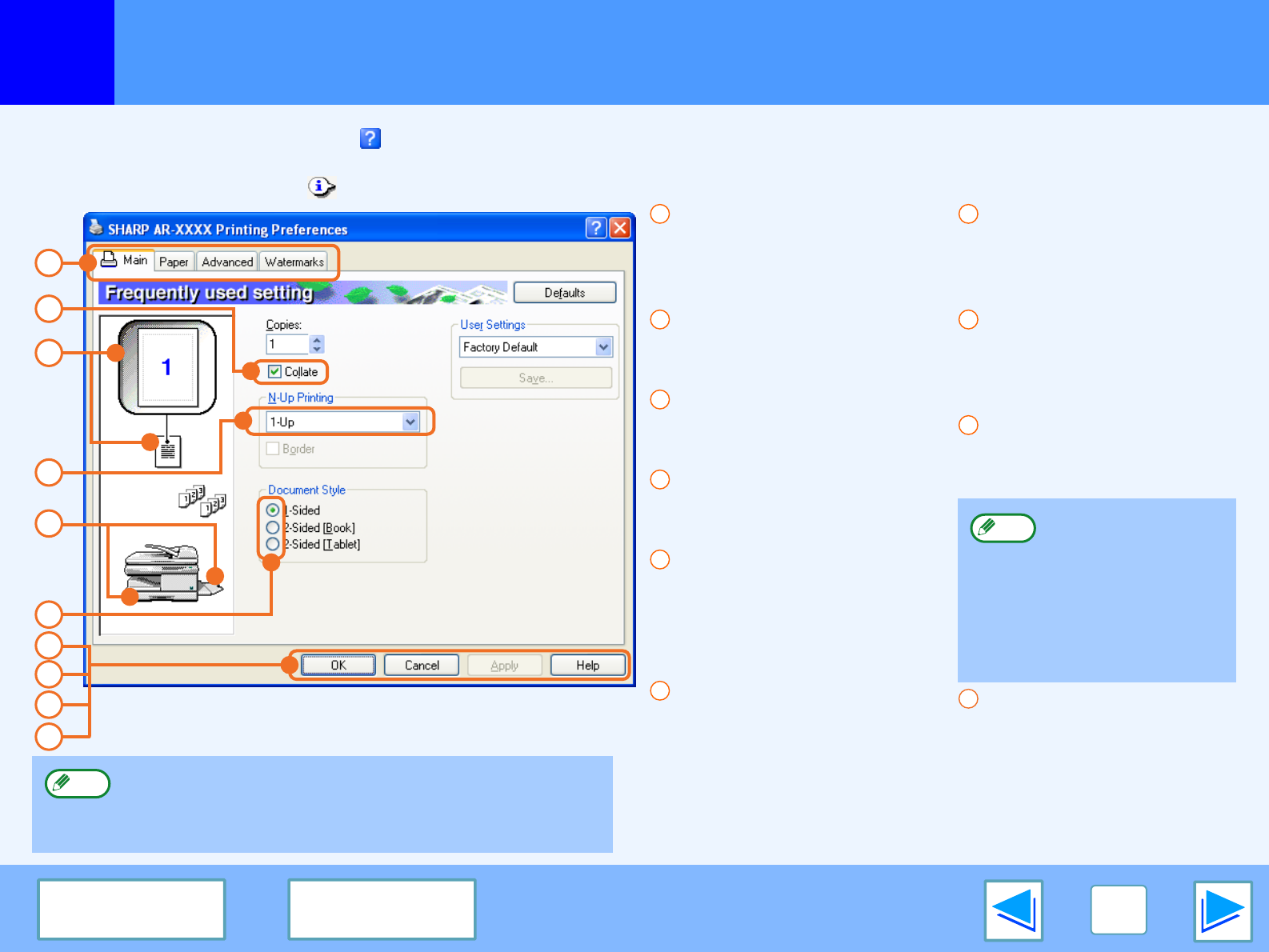help file for the printer driver.