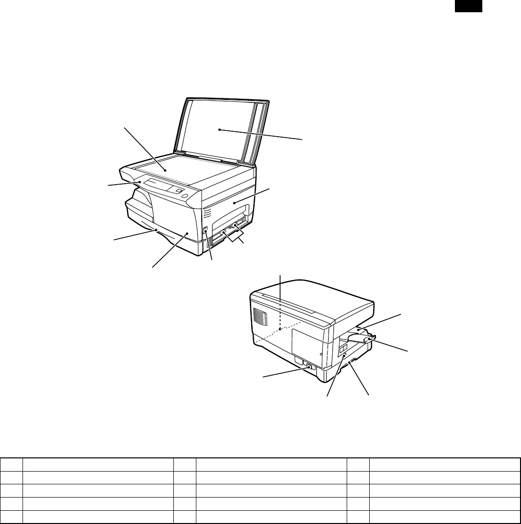 (10) Paper output tray (11) Paper output tray extension (12) Power cord socket