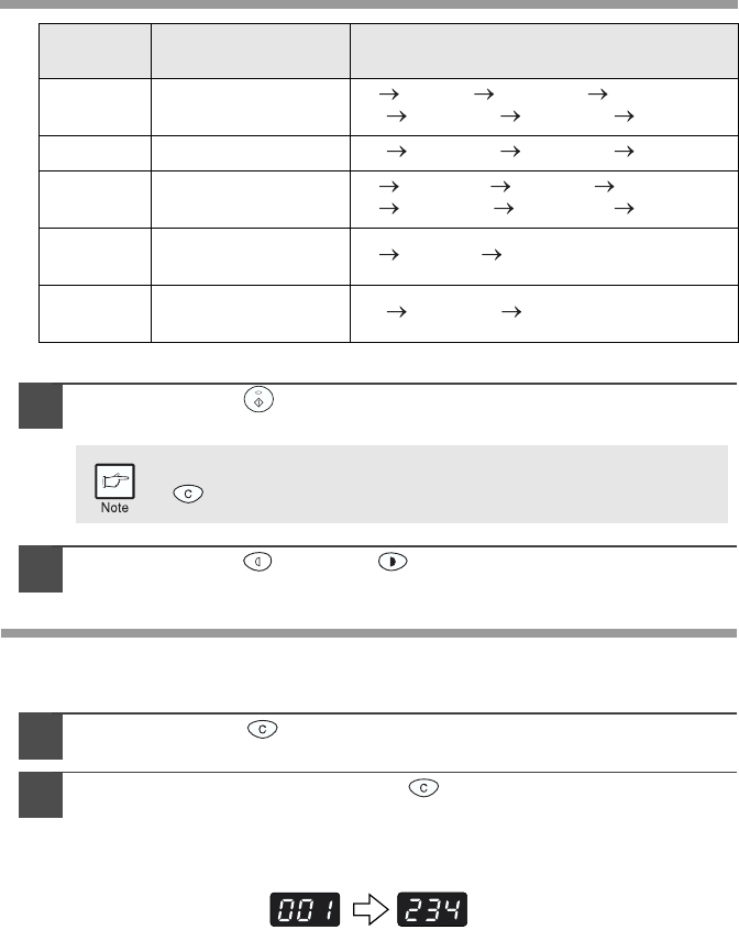 To change the setting or to set another mode, press the clear