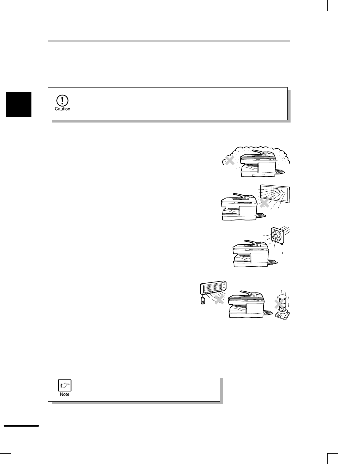 Improper installation may damage the copier. Please note the following during initial installation