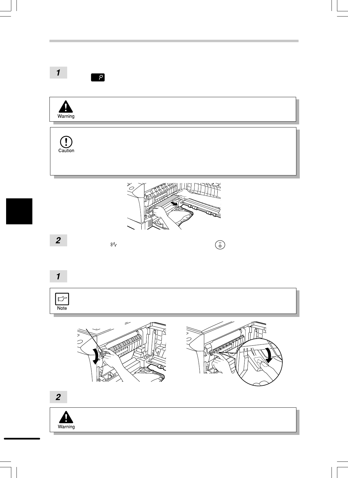 The fusing unit is hot. Do not touch the fusing unit when removing misfed