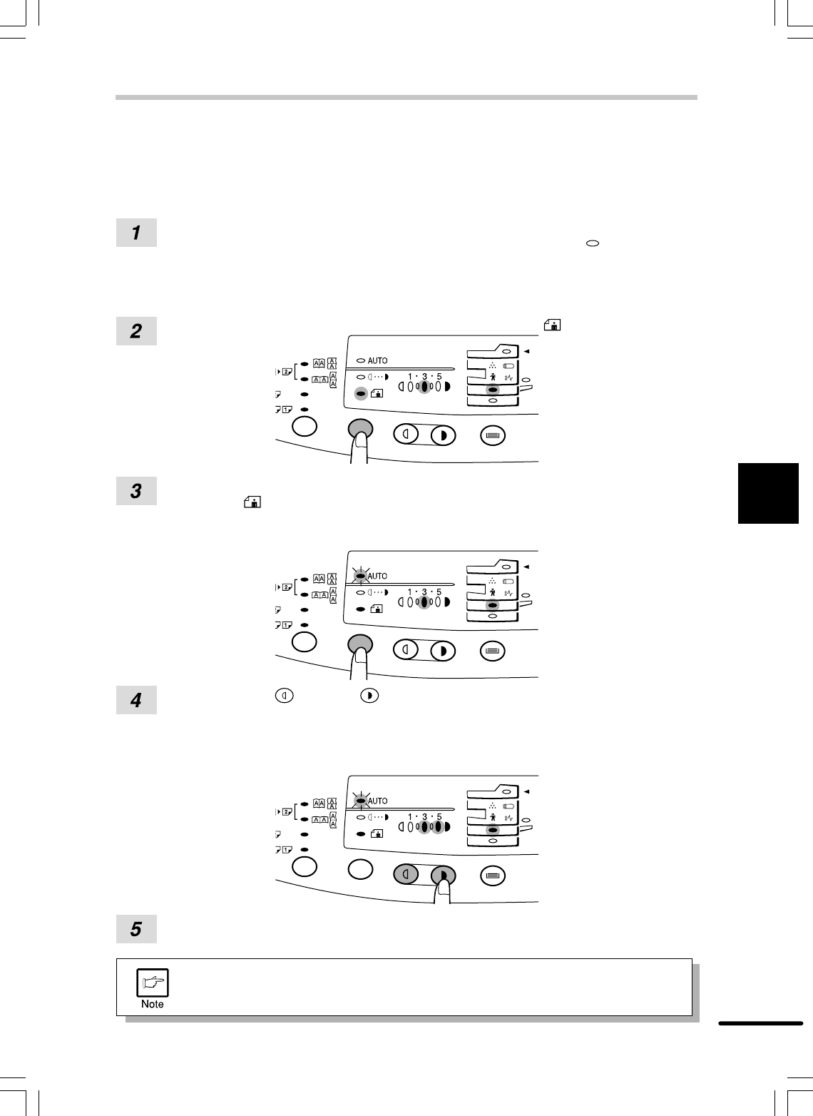 The automatic exposure level can be adjusted to suit your copying needs. This level is set for