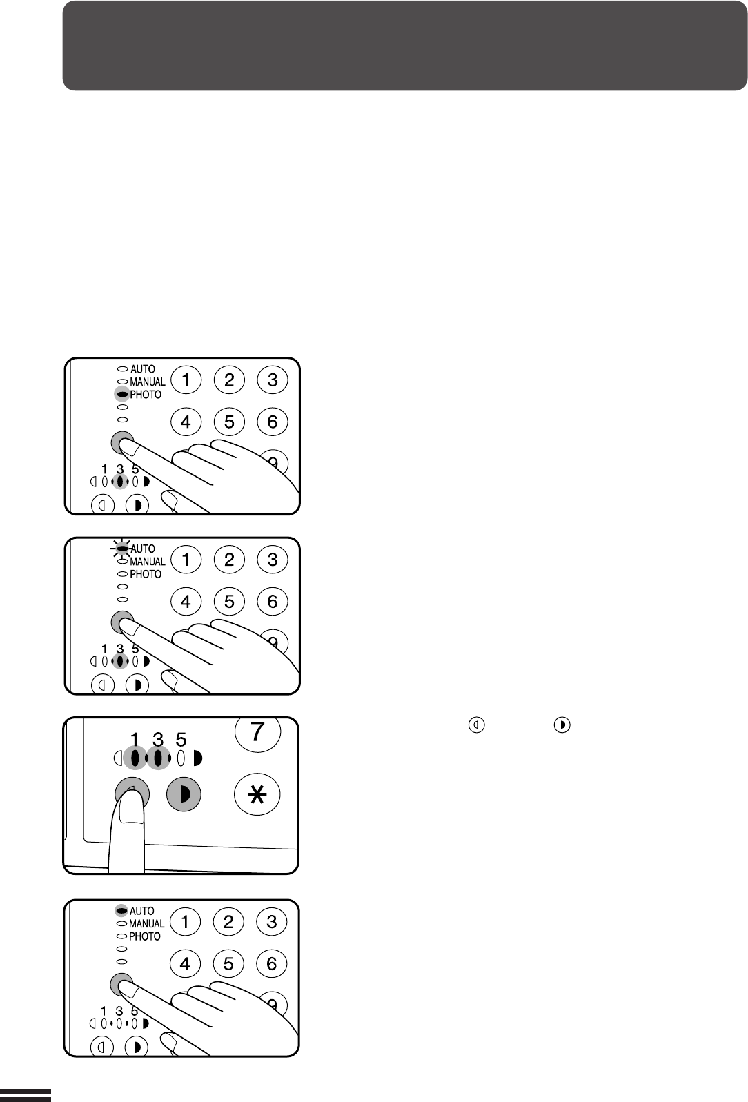 Press the AUTO/MANUAL/PHOTO key to select the