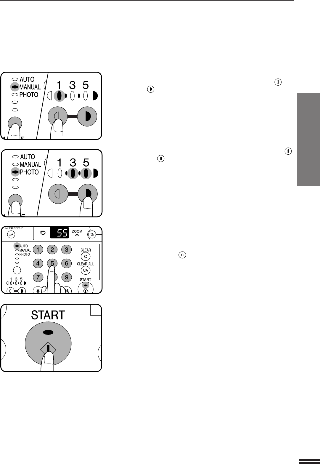 For manual copy density adjustment, press the AUTO/MANUAL/
