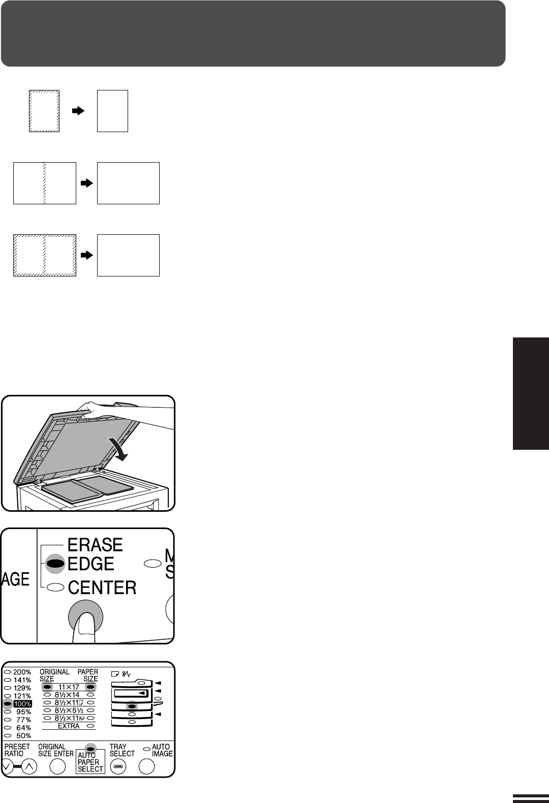 To select the EDGE + CENTER ERASE mode, press the ERASE key