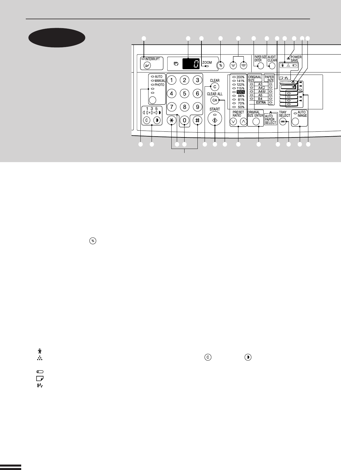 Use to select any reduction or enlargement copy ratio