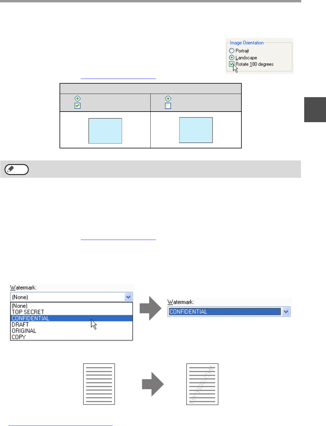 This feature rotates the print image 180 degrees to enable correct printing on paper