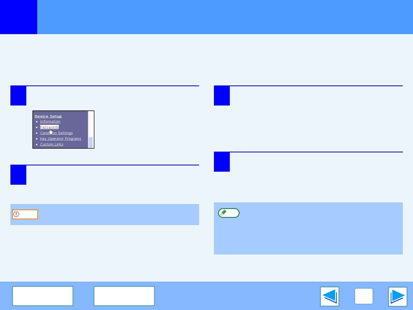 Passwords can be set (click [Passwords] in the menu frame) to restrict Web page access and protect settings. The administrator