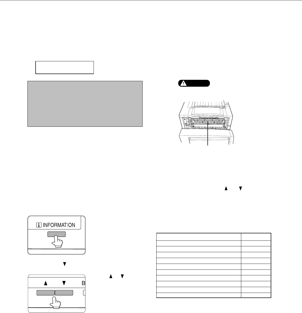 If the INFORMATION key is pressed when a misfeed has occurred, messages will appear giving guidance for