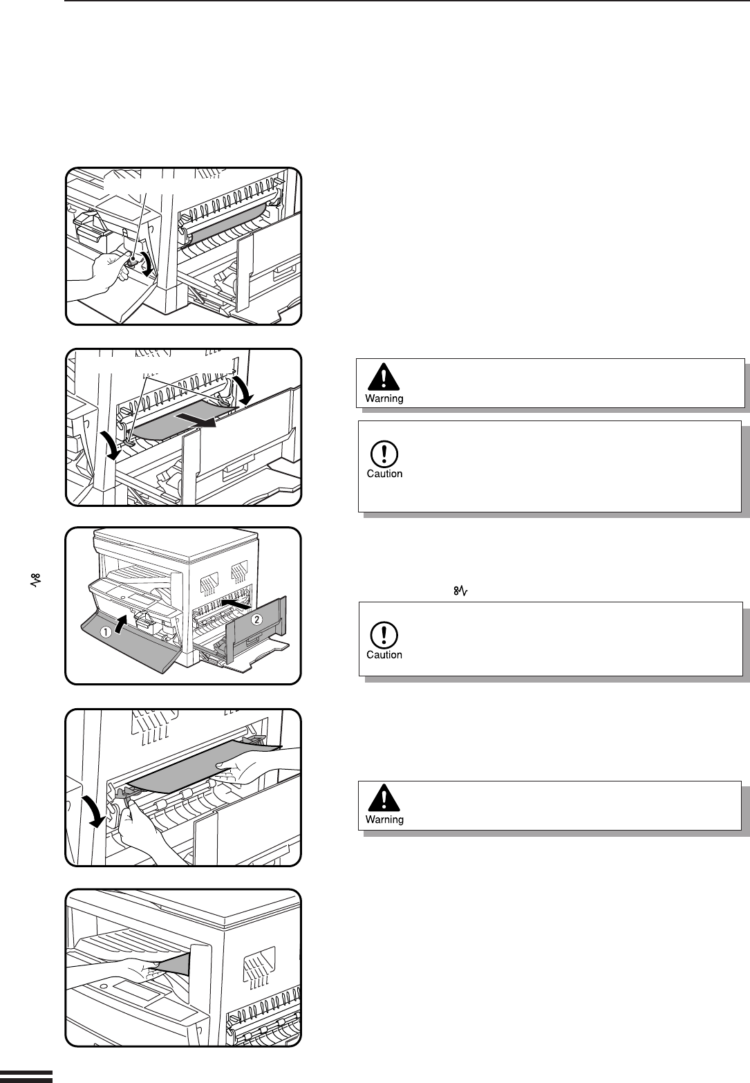 when removing the misfed paper. Doing so may