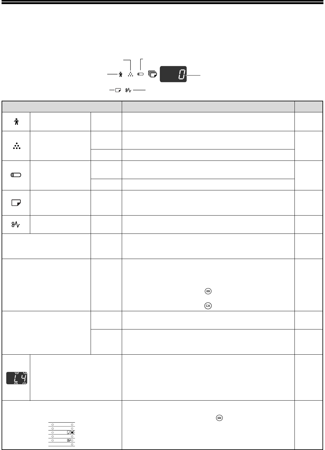 If one of the following indicators lights up or one of the following messages appears in the display, check the