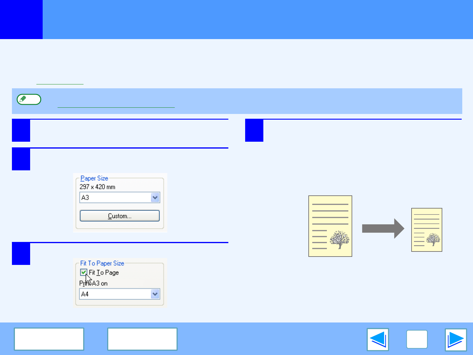 Follow the steps shown below to use this function. The explanation below assumes that you intend to print an A3 or Ledger size