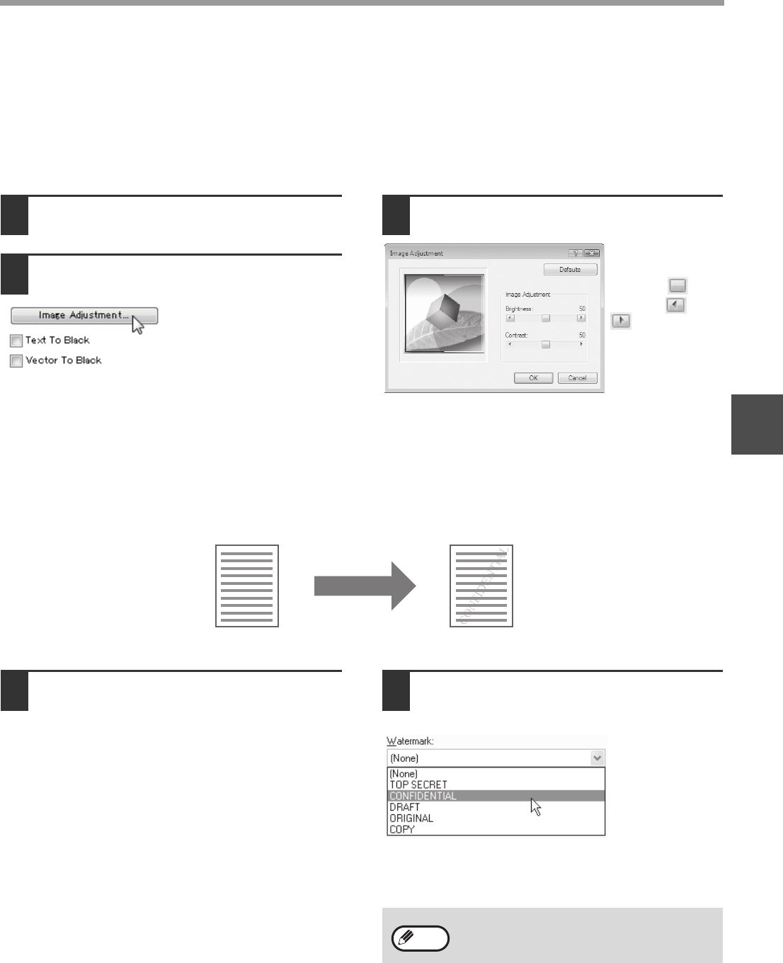 Faint shadow-like text can be added to the background of the printed image as a watermark. The size, density, and
