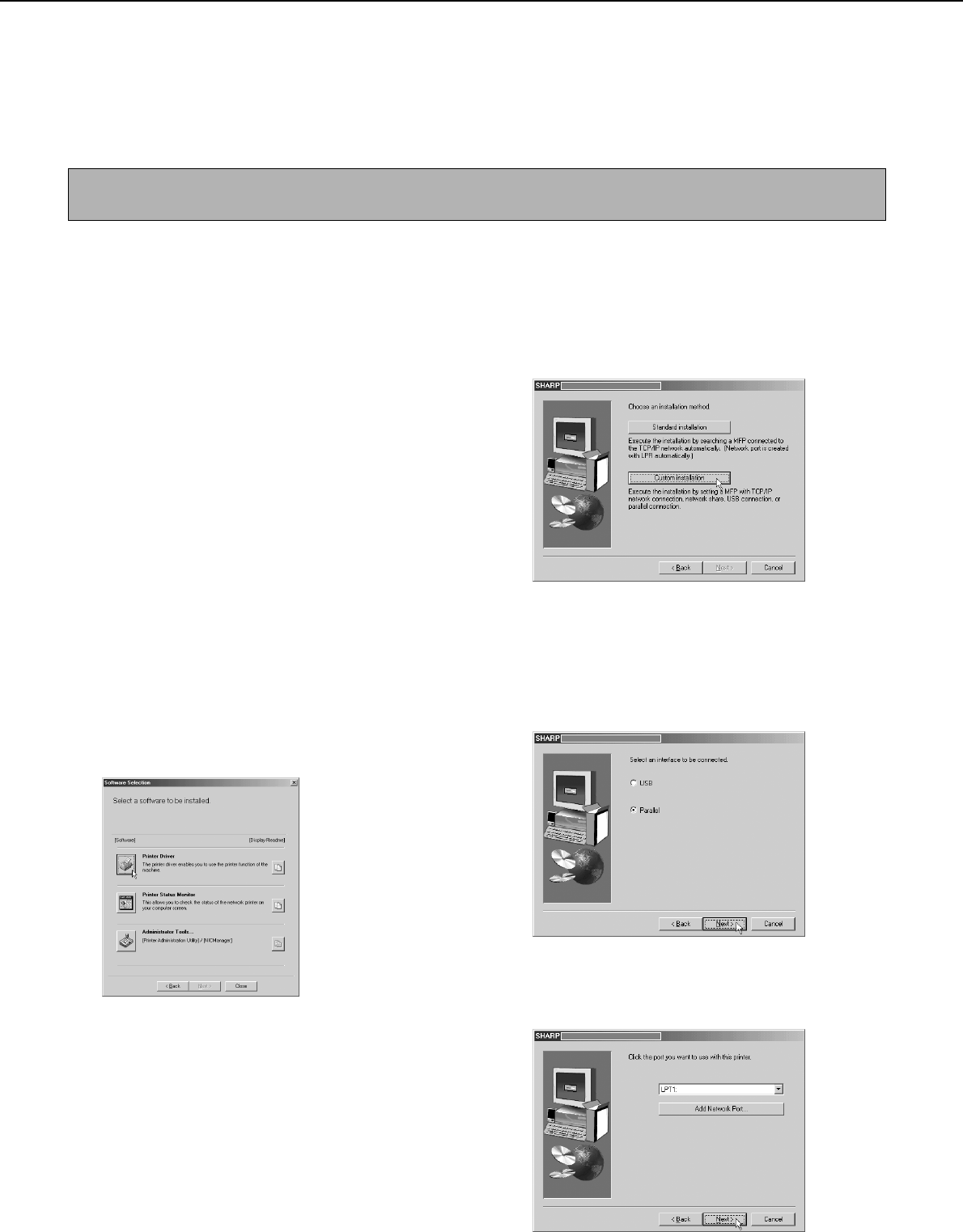 Installing the software in Windows 95/98/Me or Windows NT 4.0/2000 (Parallel interface)