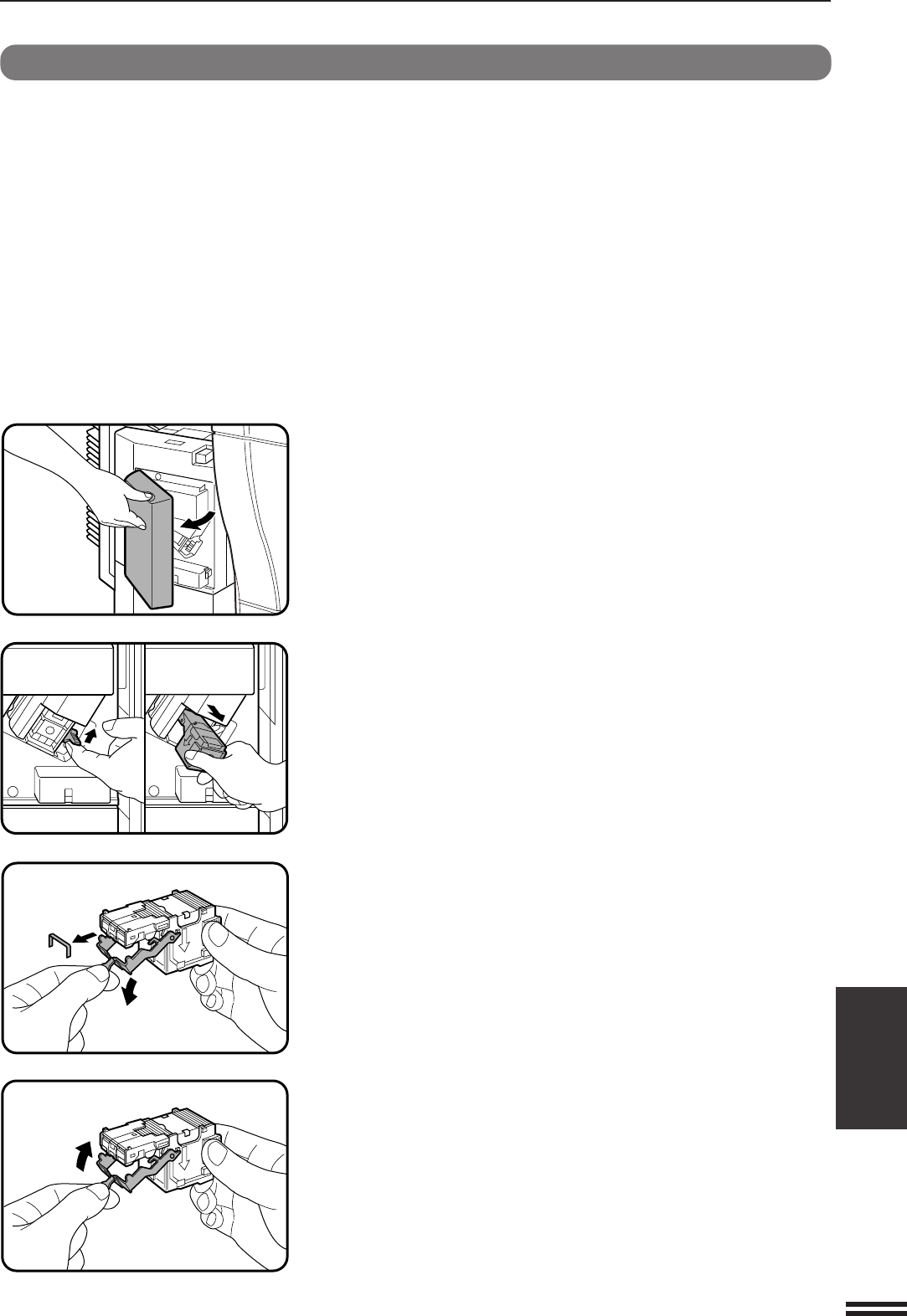 STAPLER POSITION OR STAPLE JAM.” will appear. Remove the