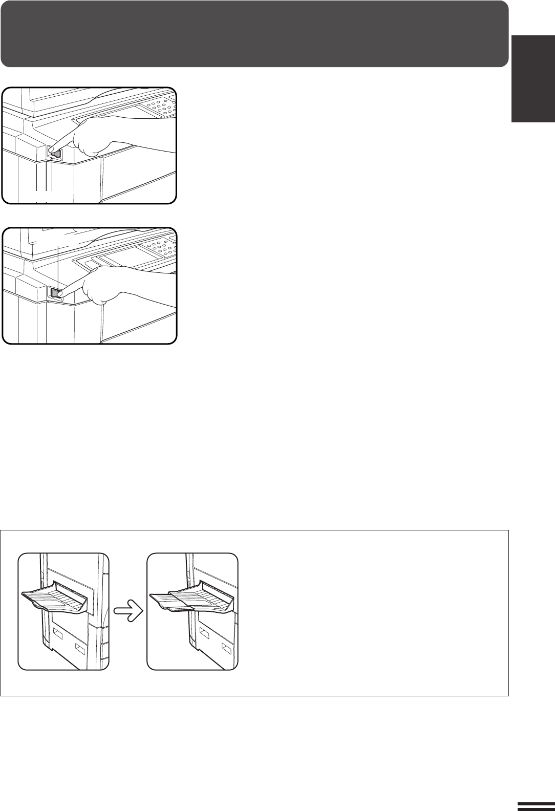 The power switch is located on the left side of the copier. When the