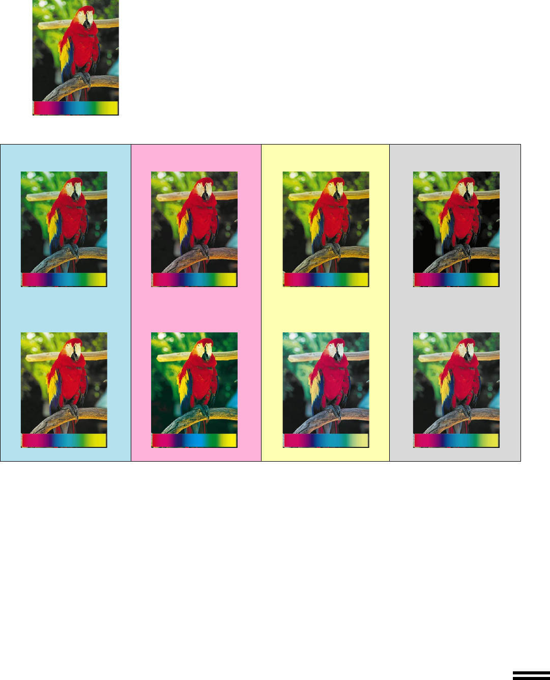 The Color Balance function allows the density of colors to be adjusted. Adjusted color samples are shown below.