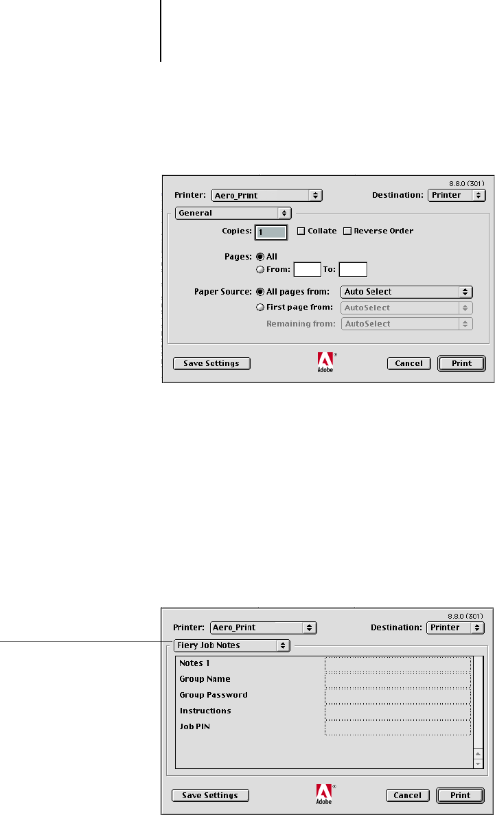 7. Select the Fiery as your printer and specify settings for the print