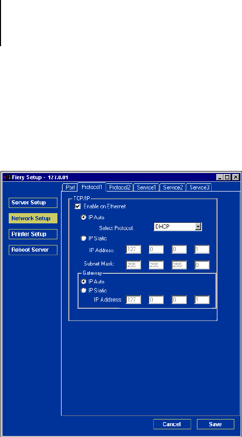Note:If you specify the DHCP or BOOTP protocol, the Fiery