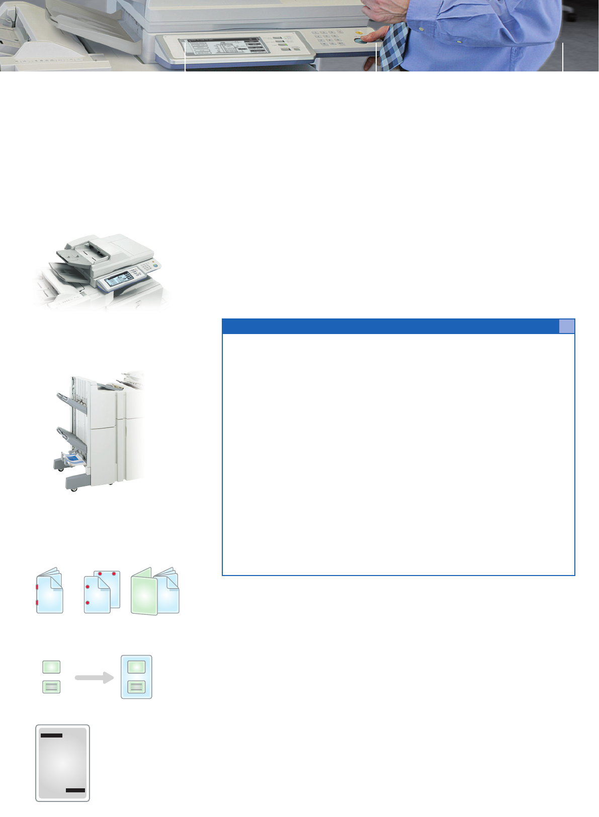 available for attaching pre-printed covers or inserts, up to 256 gsm, to your documents.