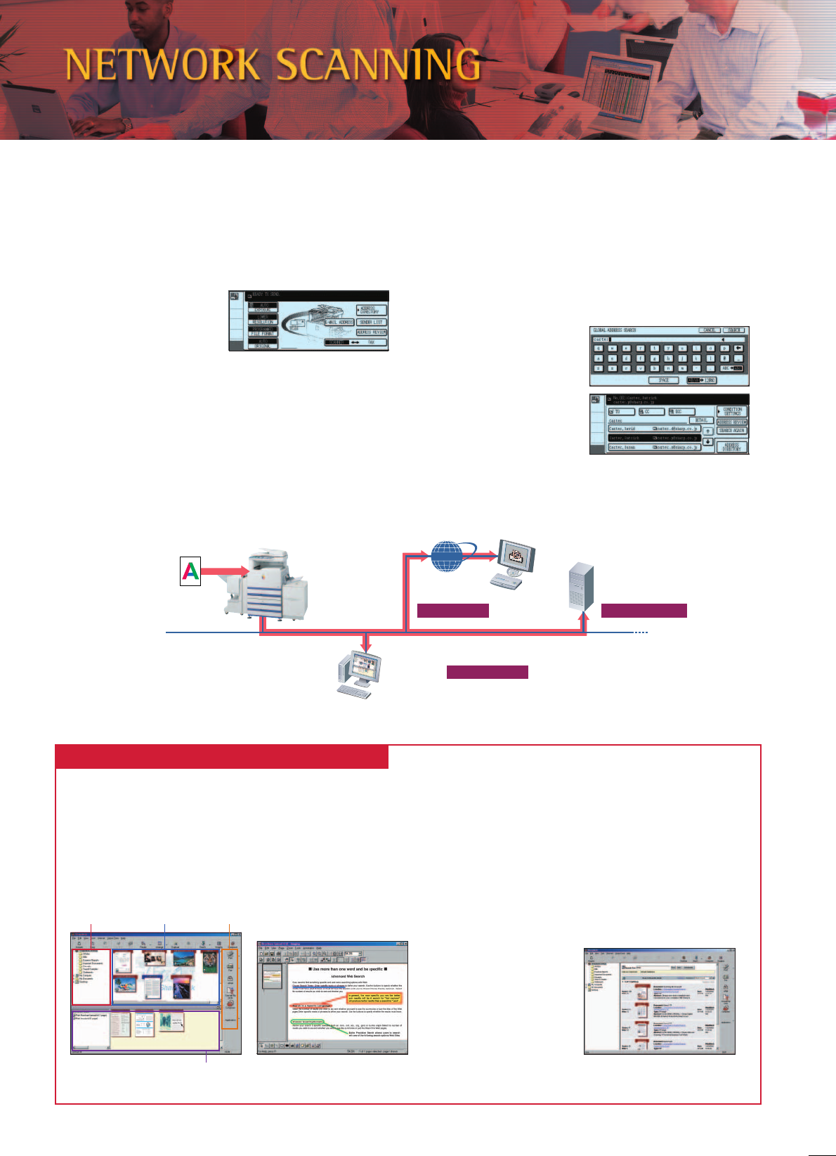 over the Internet (scan to e-mail) or stored on a file server where
