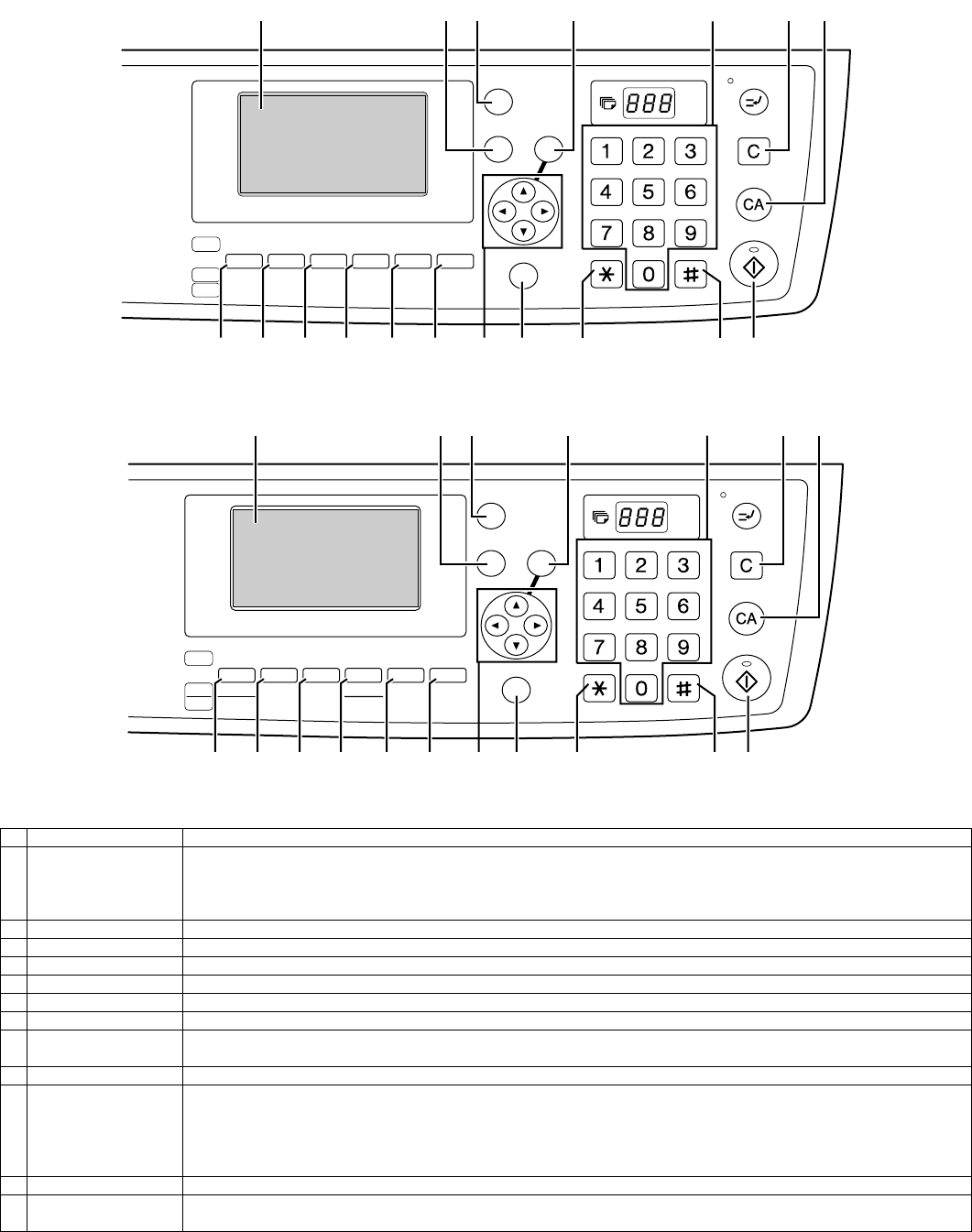 21 [DUPLEX SCAN] key Press this key to use the duplex scan function. (Only on models with a SPF installed.)
