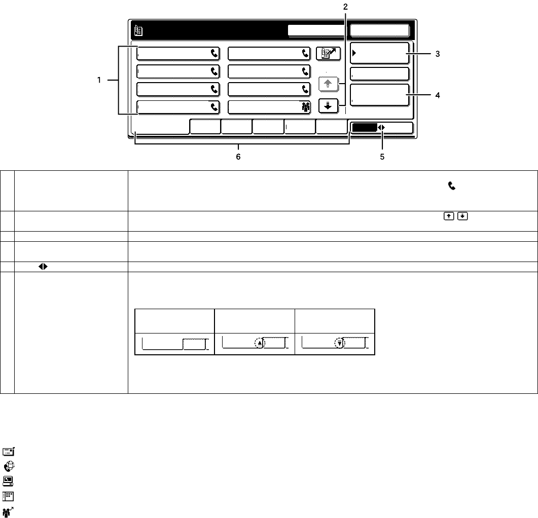 the icon at the right. One-touch keys in which a fax number is stored are indicated by a " " icon.