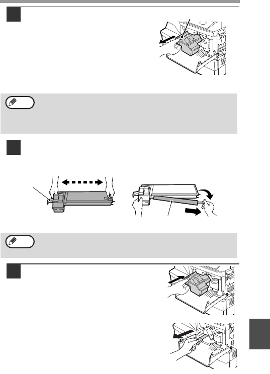 • After removing the toner cartridge, do not shake it or tap on it. Doing