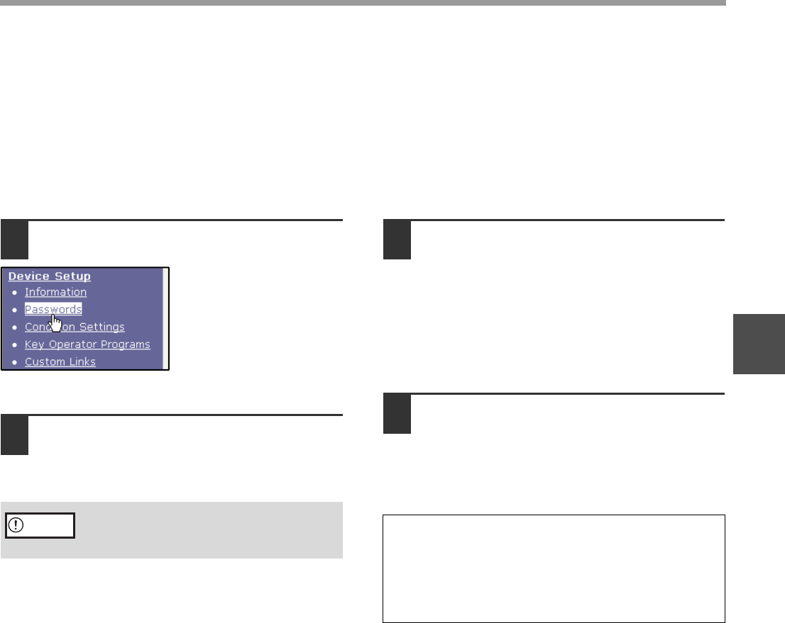 The settings and information programmed in the Web page can be protected by establishing passwords (click