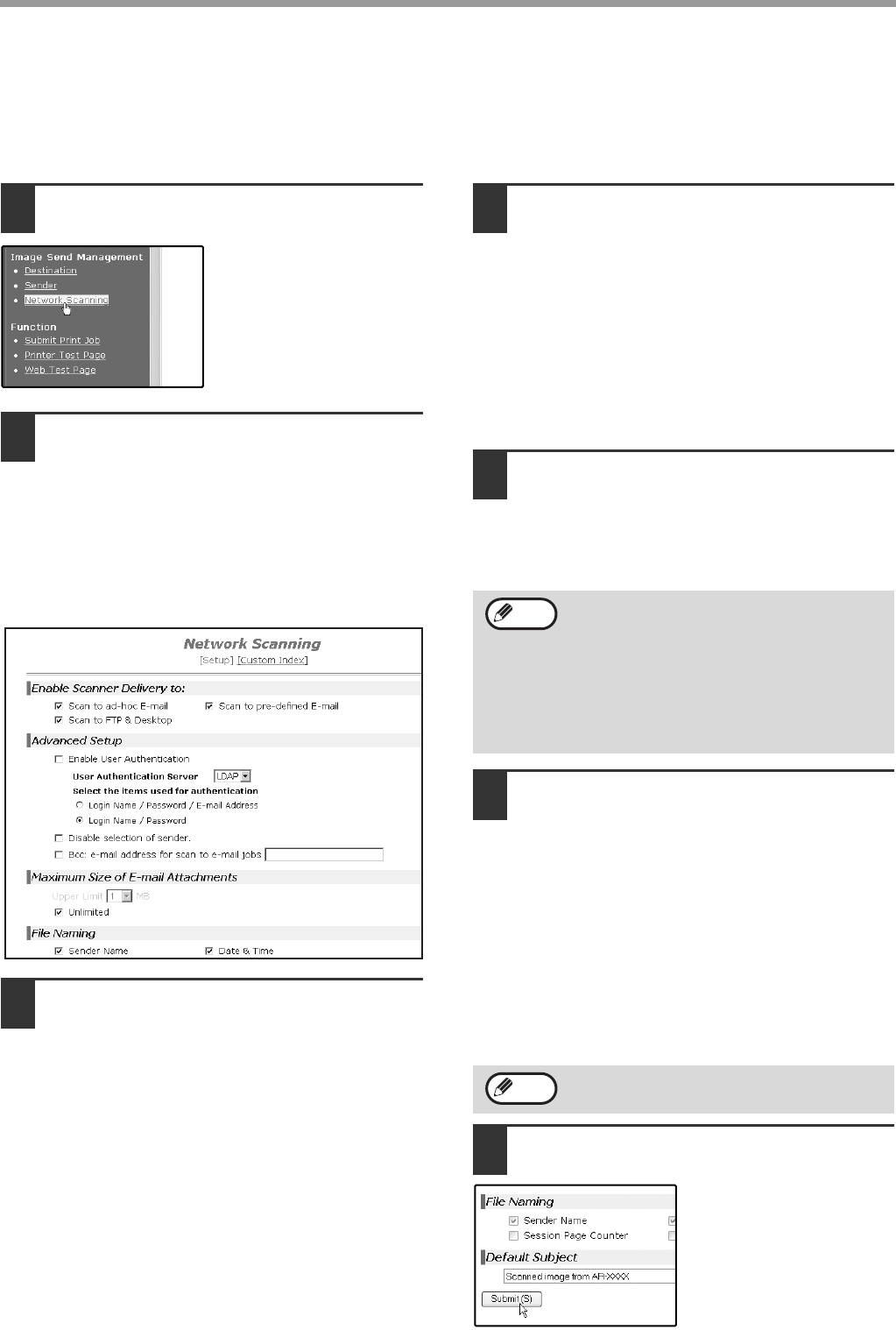 Click "Network Scanning" in the menu frame, and then establish the required settings. These settings should only be
