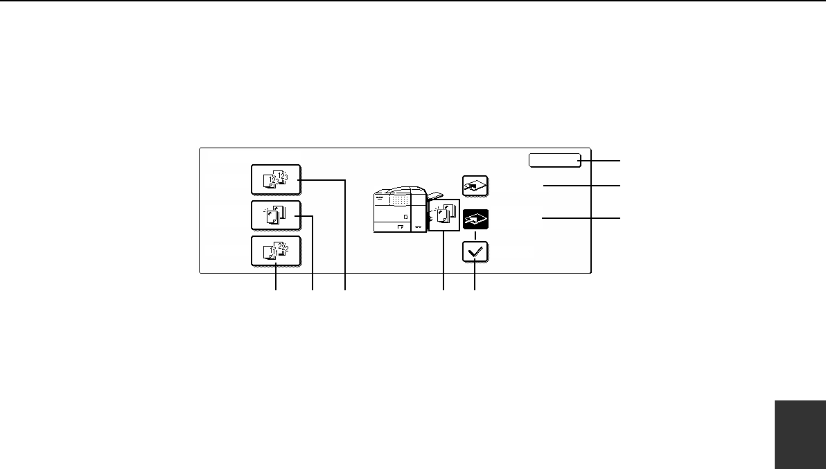 When the [OUTPUT] key on the main screen of copy mode is touched, a screen for selecting the sort/group/staple