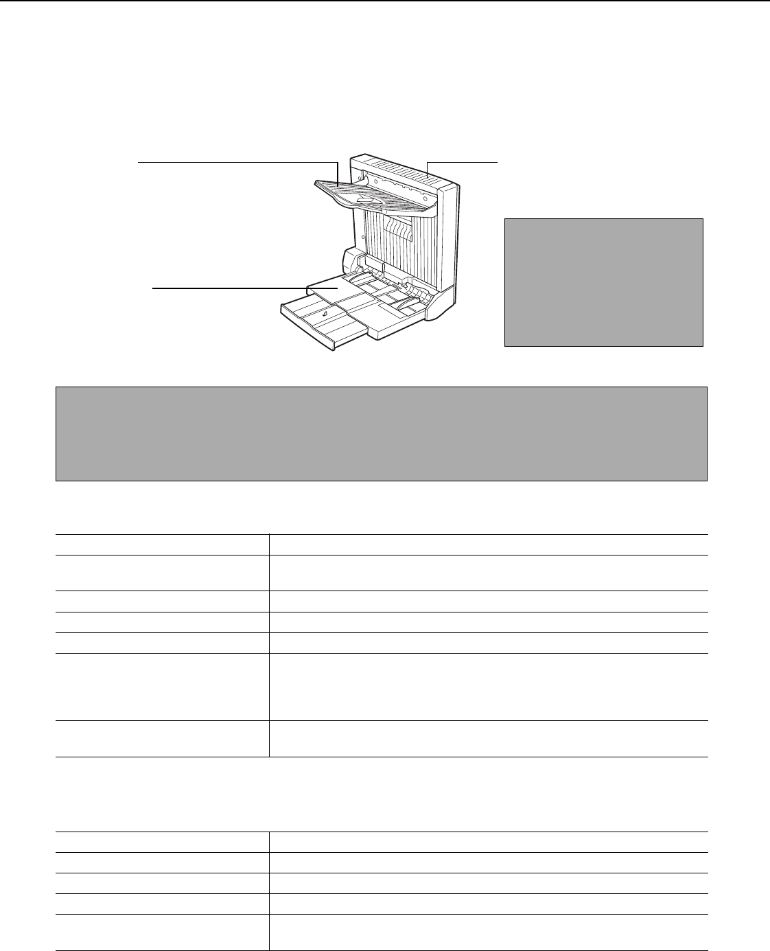 For paper size and paper weight for the bypass tray, see "Specifications of paper trays (types and sizes of