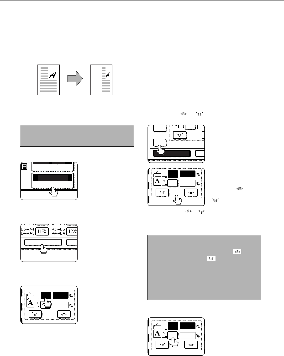 The XY ZOOM feature allows the horizontal and vertical copy ratios to be changed separately. The ratios can set