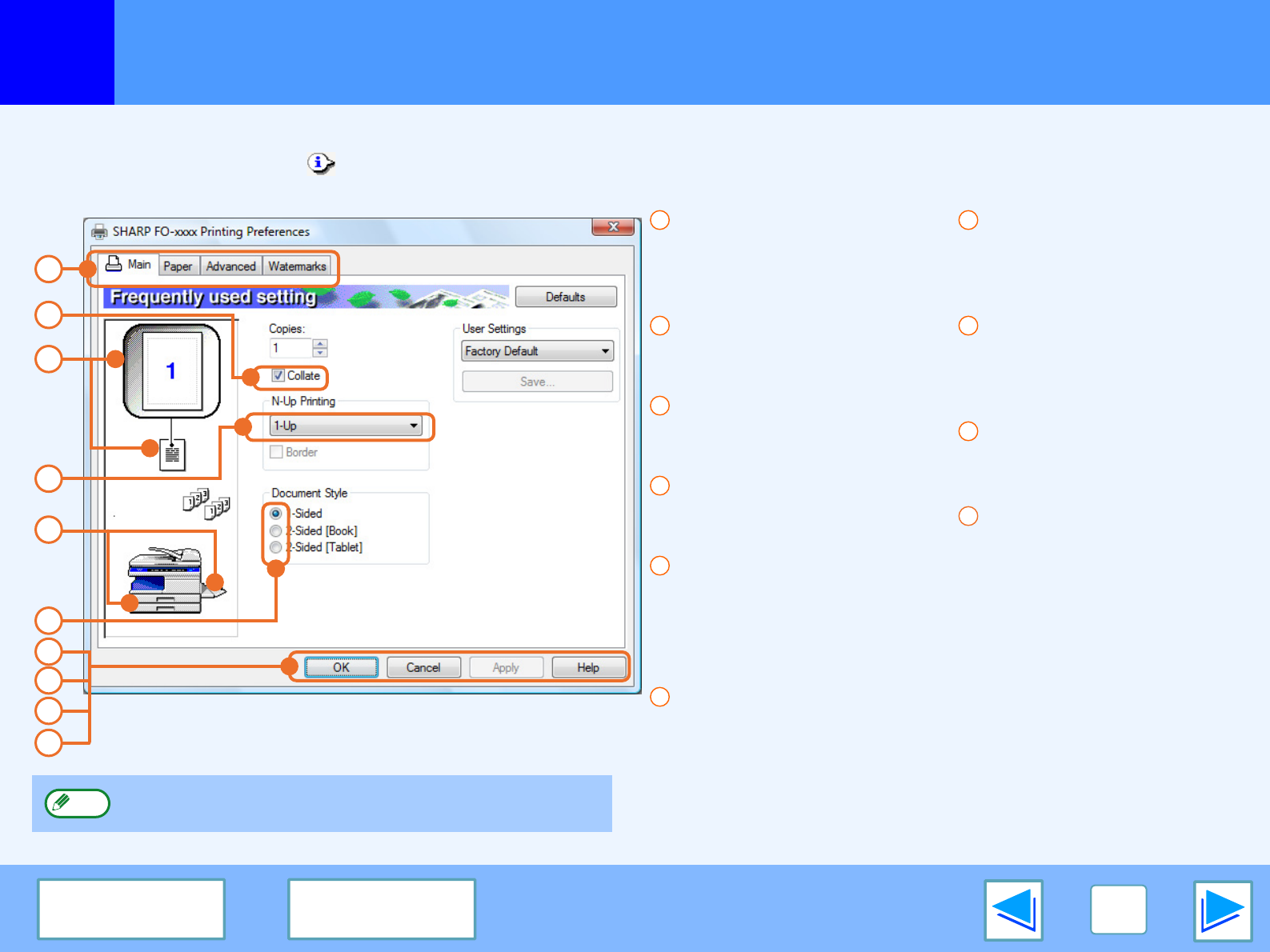 help file for the printer driver.