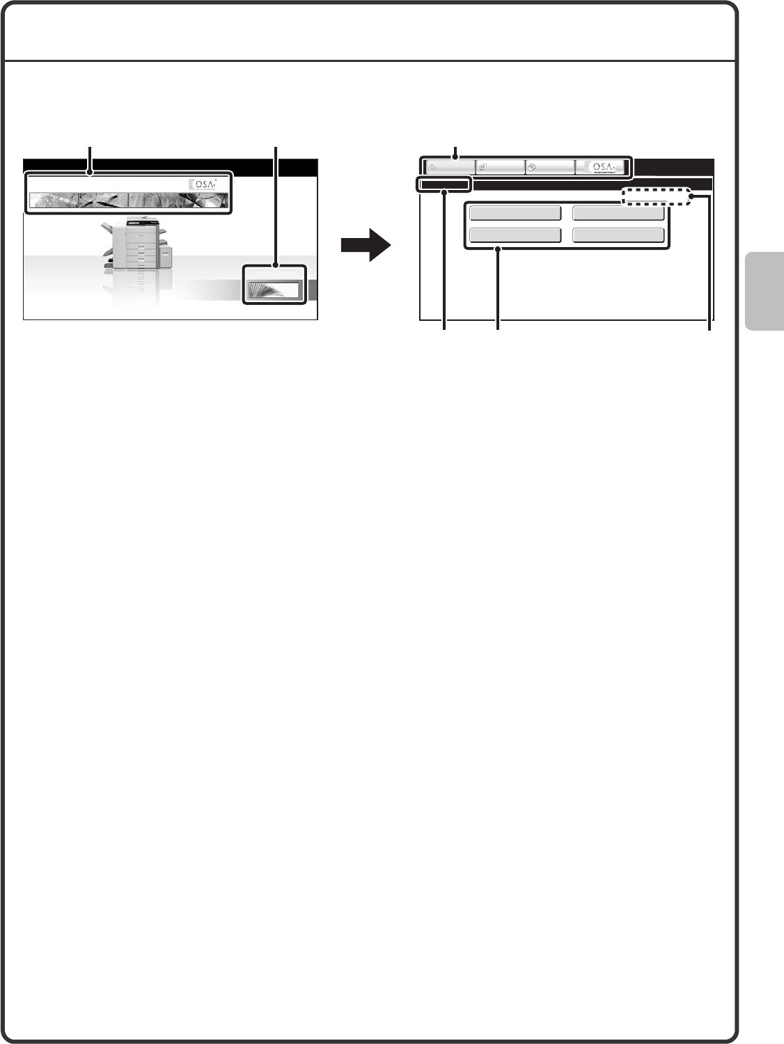 When the [HOME] key is pressed on the operation panel, the home screen appears in the touch panel.
