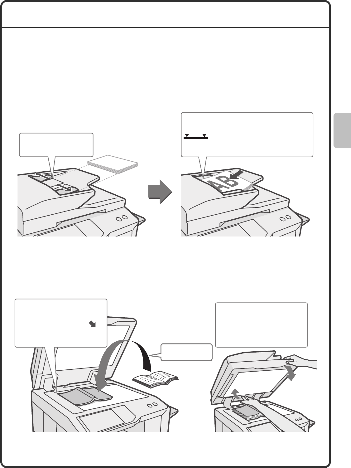 When using the automatic document feeder, place the originals in the document feeder tray.