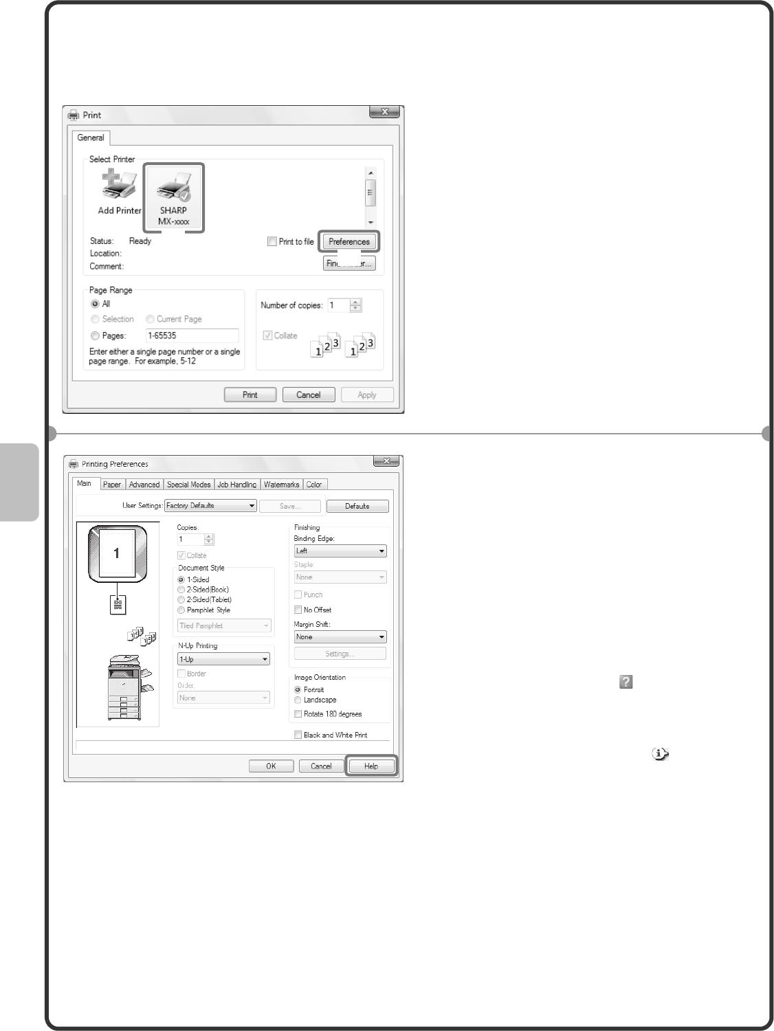Using printer driver help