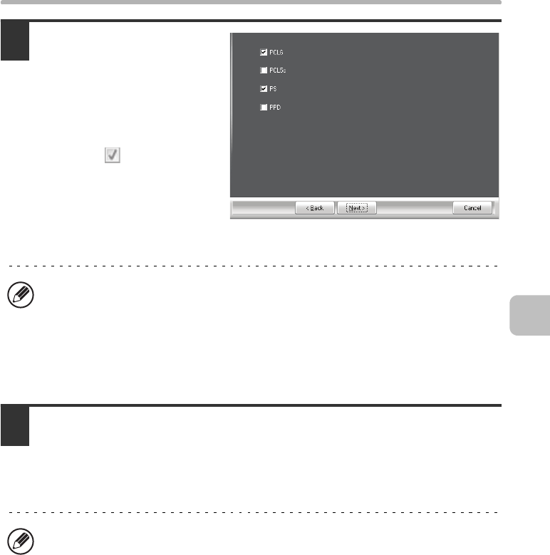 • When the PC-Fax driver is being installed, this screen does not appear. Go to