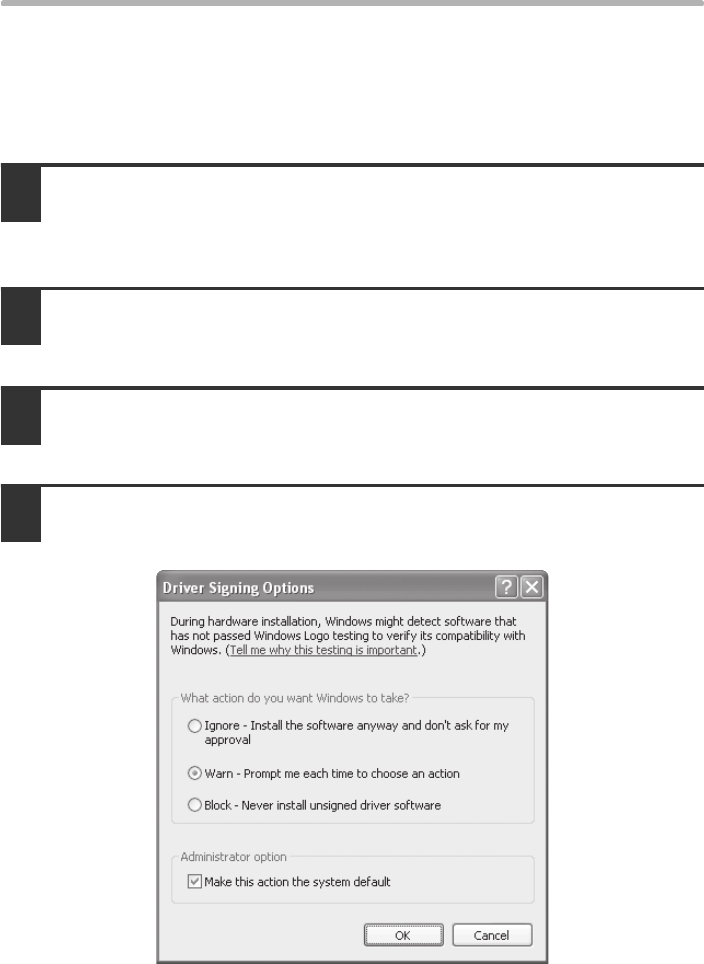 If [Block] is selected, the printer driver cannot be installed. Select [Warn] and install