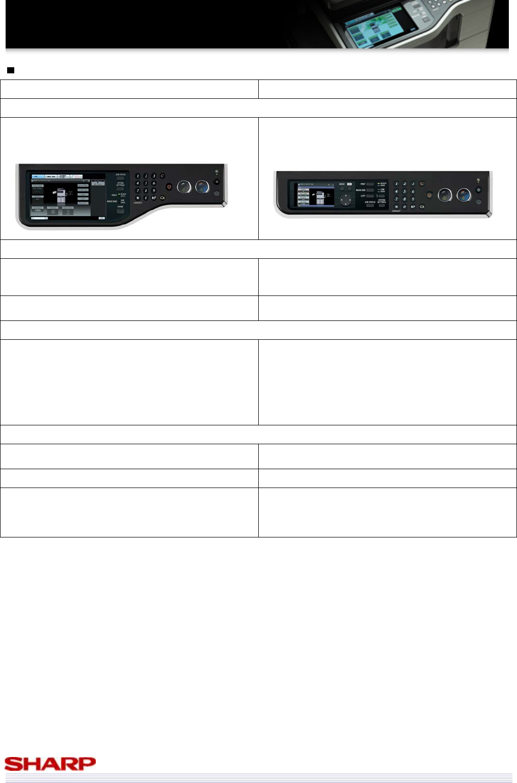 The MX-C380/C310 control panel is a smaller, 4.3”