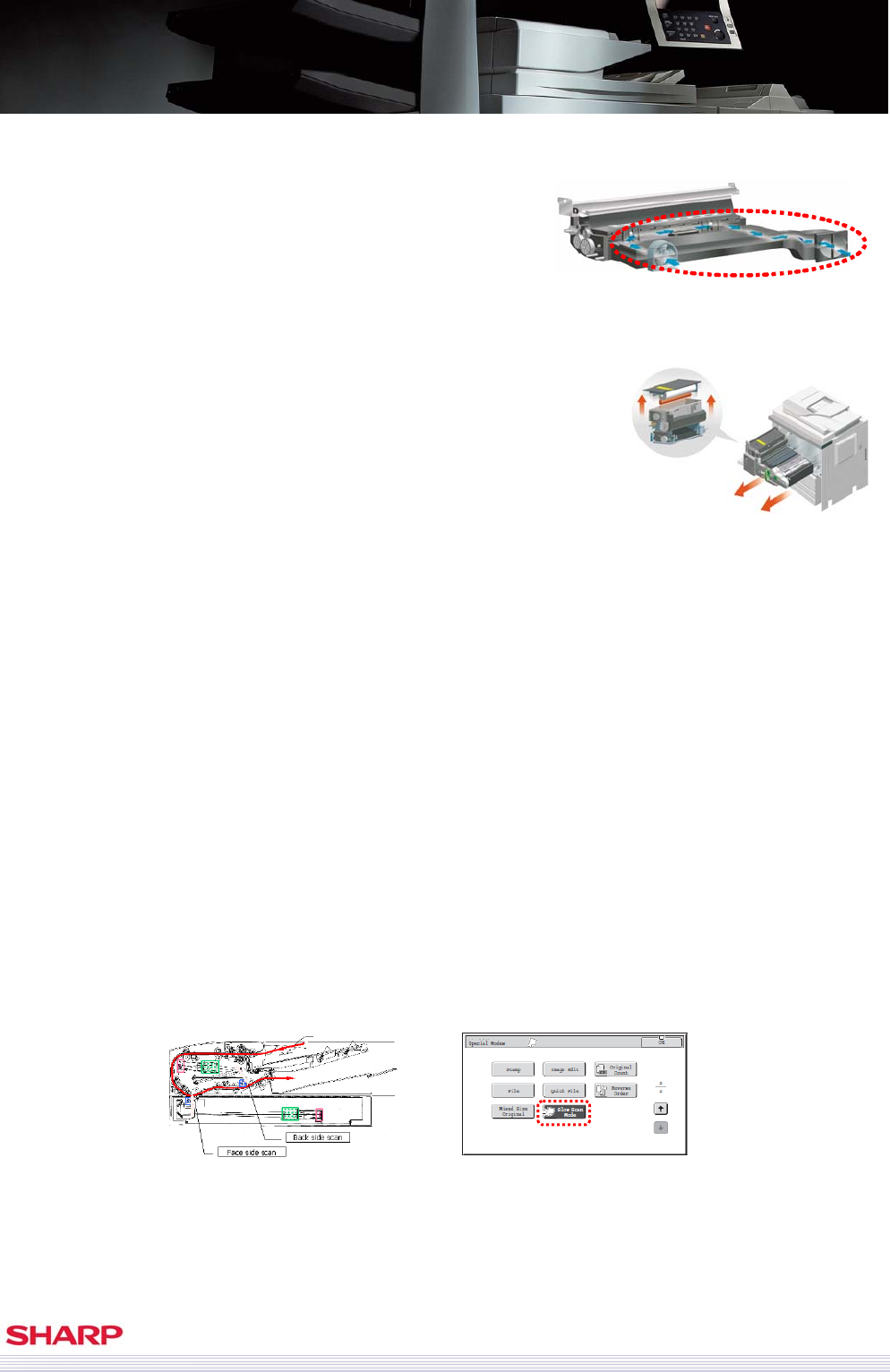 Furthermore, MX-M1100/M950/M850 has ‘Slow scan mode’ for scanning small (thin) documents.