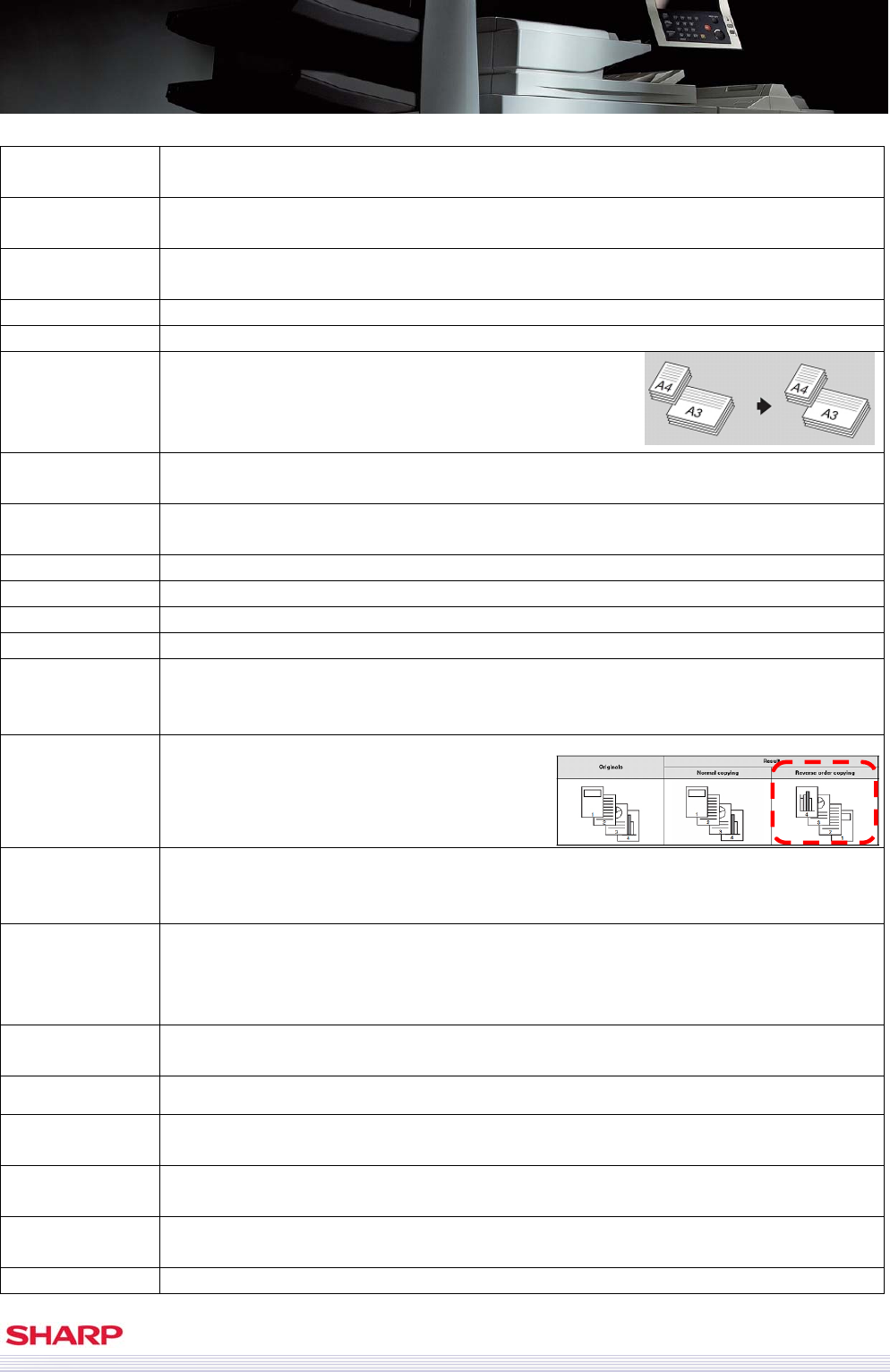 Tandem Copy Connects one machine to another within the MX-M1100/950/850 series, and this way