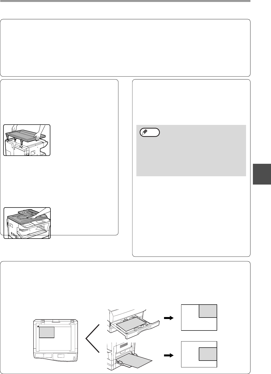 Zoals weergegeven in onderstaand voorbeeld, als er een origineel kleiner dan het papierformaat (bijv. A5 origineel en A3